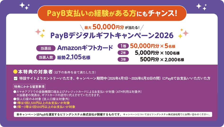 ② 2024年7月1日〜2026年3月31日の間JAバンクアプリのPayBによるお支払いがなく、かつ対象期間中(2026年4月1日~2026年6月30日の間)にPayBでお支払いいただいた方